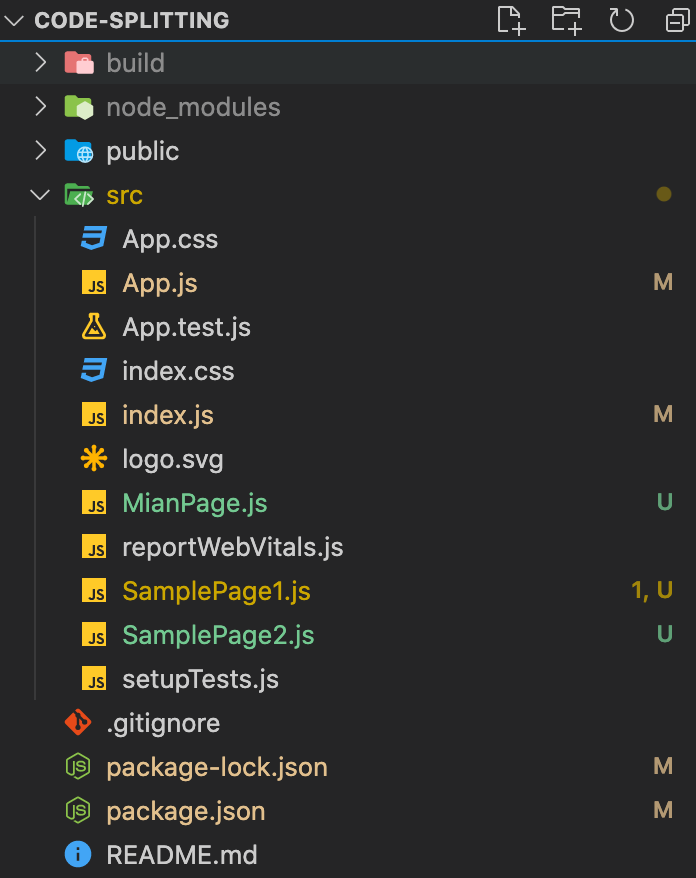 이제 페이지 별로 번들링 된 파일을 확인하기 위해서 App.js를 아래와 같이 작업해주자.