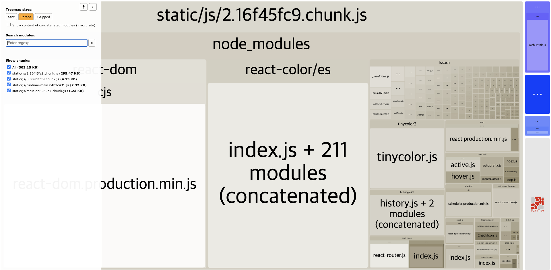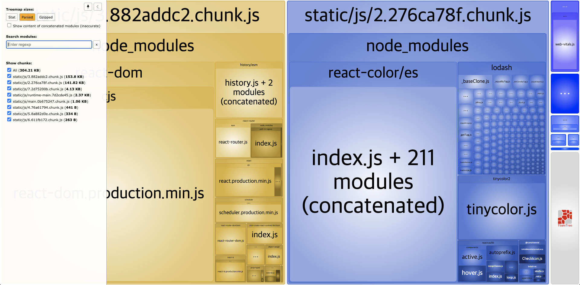 그럼 아까 전 cra-bundle-analyzer로 확인한 번들링 된 결과물도 바뀌었나 확인해보자.