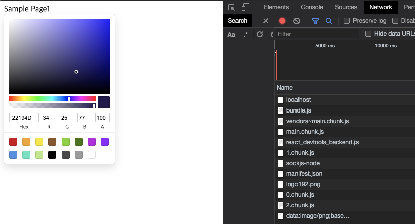 번들링 된 페이지가 적절하게 분리되었는지 확인하기 위해서 react-color 모듈을 SamplePage1에 import 해놓자.